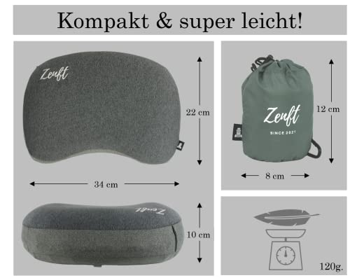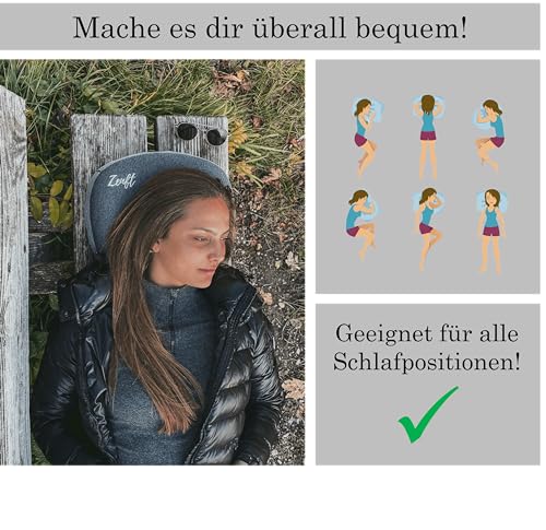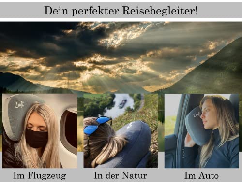 ✪ 11/22 Comparaison.org – Évaluation très bien : notre oreiller de voyage gonflable est votre compagnon idéal pour un voyage en ville, une excursion en montagne, pour la randonnée ou le ski – avec lui, vous démarrez en forme et reposé la journée.