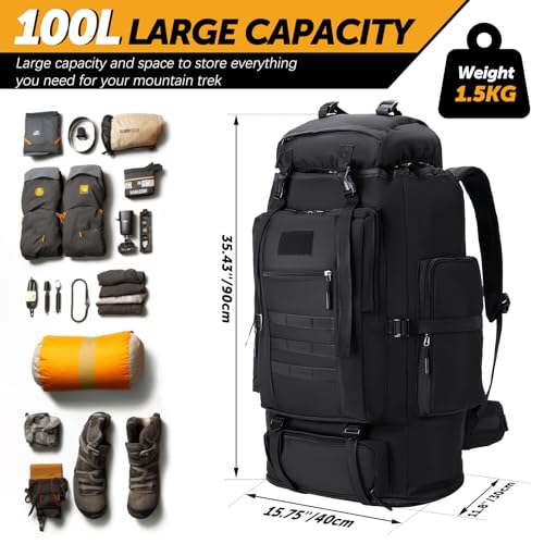 Sac à Dos de Randonnée 100L – Grande Capacité pour Voyage, Camping, Trekking – Léger et Imperméable pour Homme Femme Sports de Plein Air