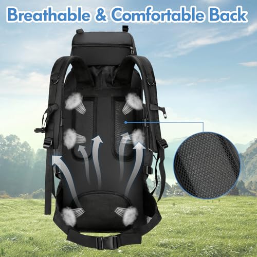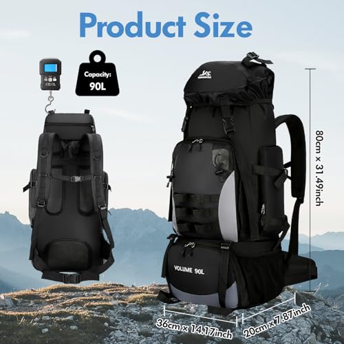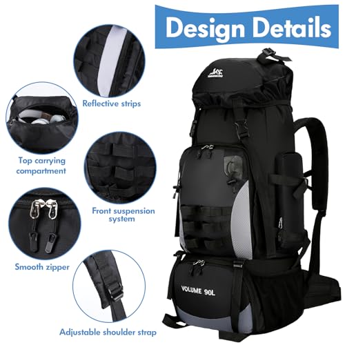 Sac à dos de randonnée 90L, sac à dos léger résistant à l’eau pour hommes femmes sac à dos de camping pliable respirant sac à dos de voyage pour l’escalade Pêche Alpinisme Tourisme Cyclisme