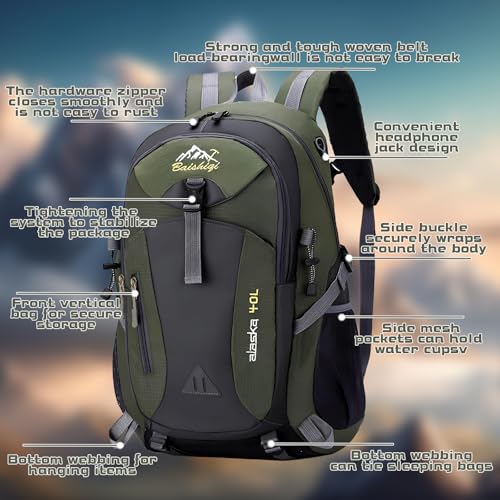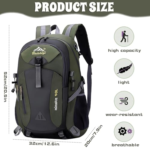 Sac à Dos de Randonnée Léger 40L, Sac à Dos de Voyage Trekking en Polyester pour Femmes Hommes, pour Sport en Extérieur, Sports de Plein Air, Camping, Escalade, Ski et Cyclisme