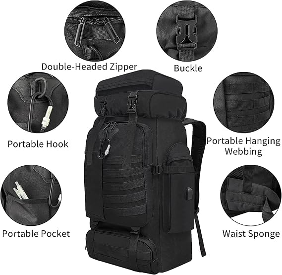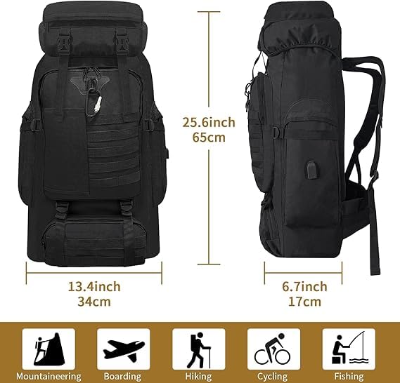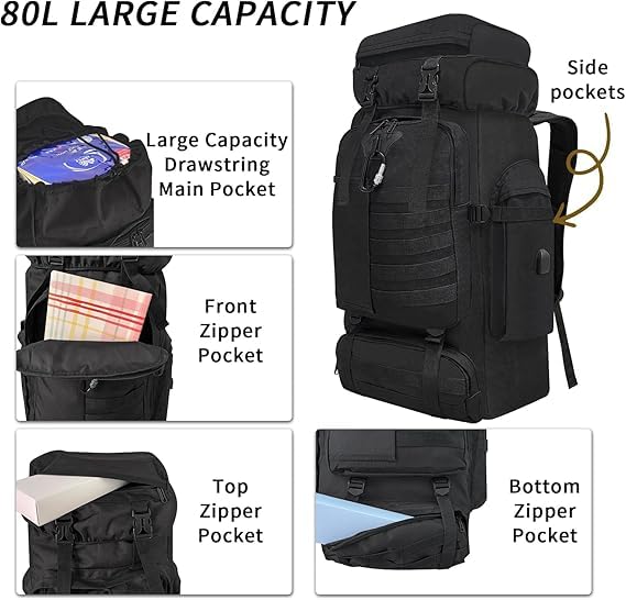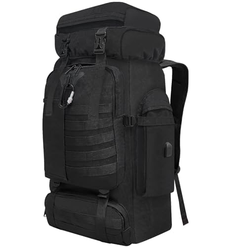 Sac à dos de randonnée pour homme et femme, 80 L, sac à dos de trekking, d’alpinisme, de voyage, sac à dos pour camping, entraînement en plein air, cyclisme, sport, gym, taille L (noir)
