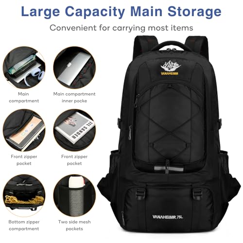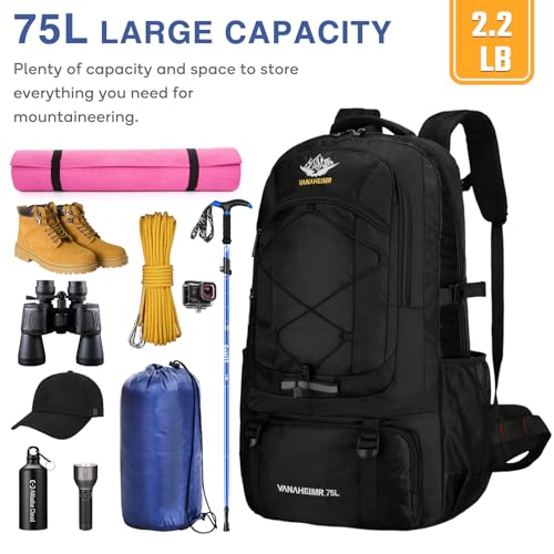 Sac à Dos de Randonnée pour Homme Femme 75L Grande Capacité Sac à Dos Trekking Imperméable Sac À Dos De Camping Pliable Voyage pour Alpinisme Sport Camping Trekking Escalade