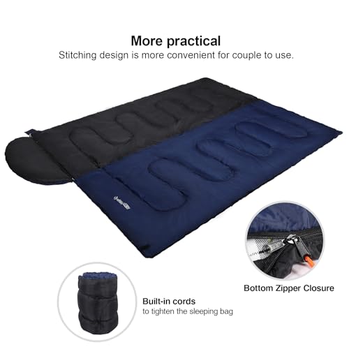 Plage de températures : les sacs de couchage avec rembourrage de 1,4 kg sont confortables à 5 °C et s’adaptent à une plage de températures allant de 0 à 10 °C. Il est recommandé aux femmes de choisir les sacs de couchage plus épais.