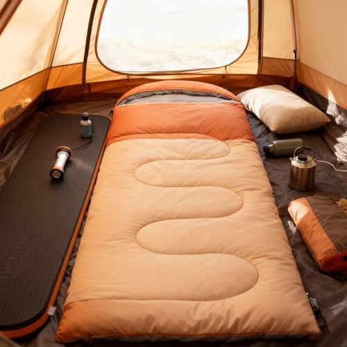 Système Thermique Optimisé: Doté d’une capuche courbée sur mesure pour épouser les contours de la tête, ce sac de couchage pour camping résiste aux basses températures et réduit ment la perte de chaleur. La conception thermique imperméable au vent et la couche d’isolation épaisse procurent une chaleur accrue, un confort durable lors de séjours prolongés dans les climats froids, avec une performance qui maximise la conservation de l’énergie thermique.
