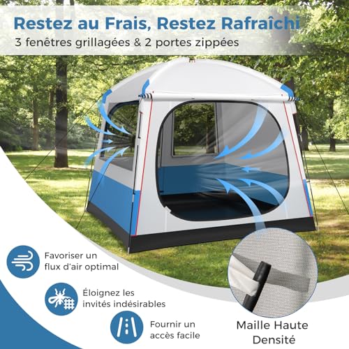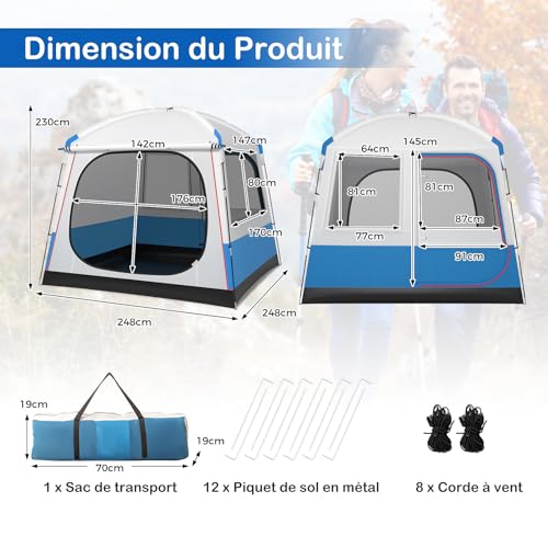 GOPLUS Tente de Camping pour 5 Personnes, Tente Familiale Coupe-Vent, Grandes Portes en Maille Double Couche, Fenêtres en Maille, Sac de Transport, Ultra Légère pour Randonnée, Voyages,248 x 248 x 230