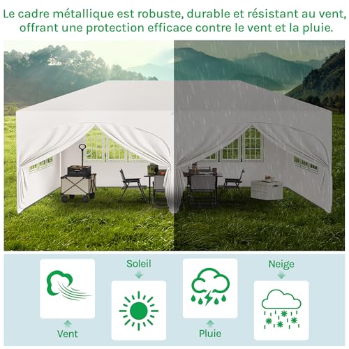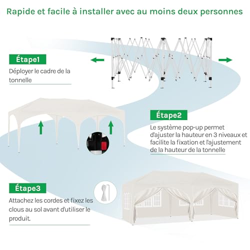 Laneetal Tonnelle de Jardin 3x6m, Tonnelle Pliante, Pavillon Imperméable, Tente Pliable avec 6 Parois Latérales et Fenêtres, Barnum Réglable en Hauteur, pour Camping Barbecue Fête Plage, Beige
