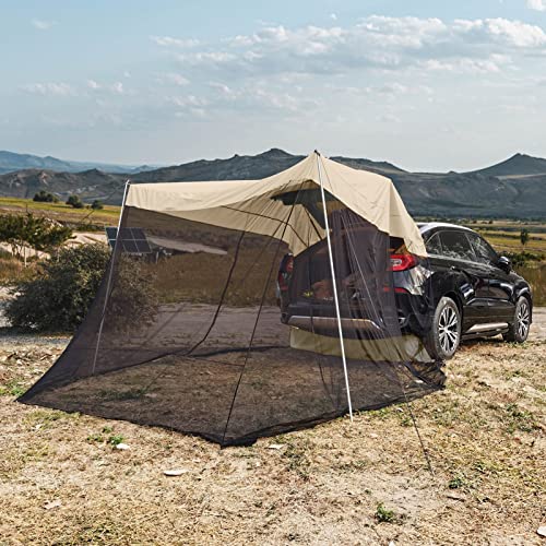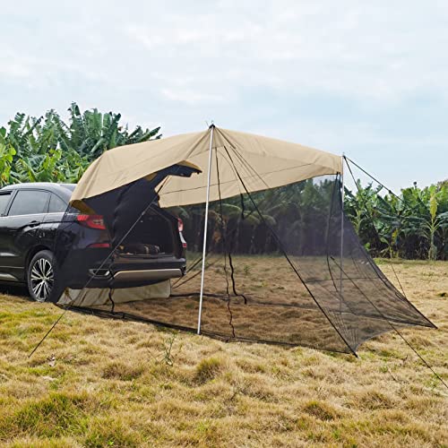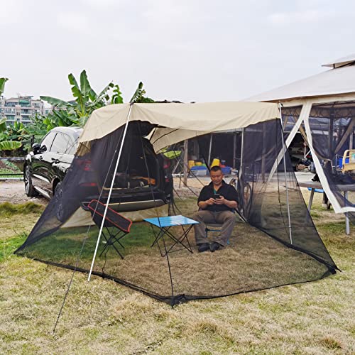 NEZIH Voiture Auttande sur Sheltere Camping SUV Tente Arrière, Porable Toit Imperméable to-Top Tent Cauve de Voitures, 3-4 Personne/Beige/Width 180Cm