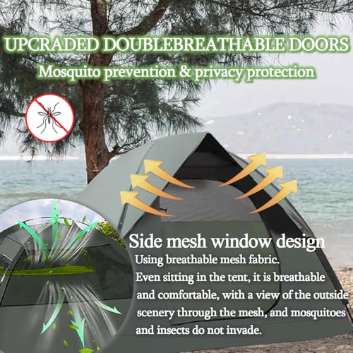 Ventilée et confortable – La tente de camping dispose d’une porte en forme de D et d’un total de 3 parapluies sont fixés au-dessus de la porte en forme de D et sur les côtés gauche et droit de la tente pour assurer la circulation de l’air et une grande respirabilité tout en repoussant les moustiques, ce qui vous offre une meilleure ventilation et un environnement de vie confortable pendant votre voyage.