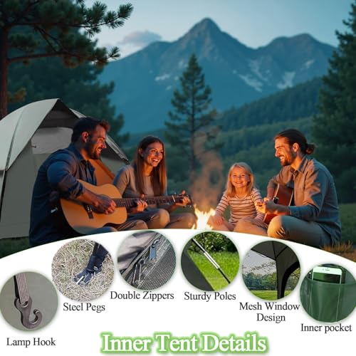Montage rapide – Avec les 2 barres autoportantes en fibre de verre, la tente de camping peut être montée et démontée rapidement et facilement. Même les campeurs inexpérimentés peuvent la monter en 10 à 15 minutes. Ainsi, vous avez plus de temps pour profiter de votre voyage en toute tranquillité.