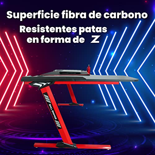 Table Gaming, 140 cm x 60 cm, Gaming Desk, grande table pour ordinateur console PS5, Xbox Series, pieds en acier, RGB LED, base de tapis, table de jeu d’angle