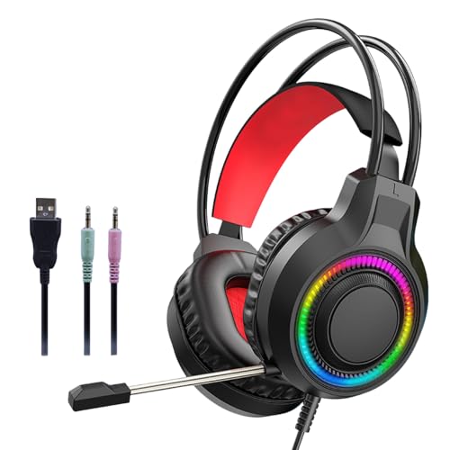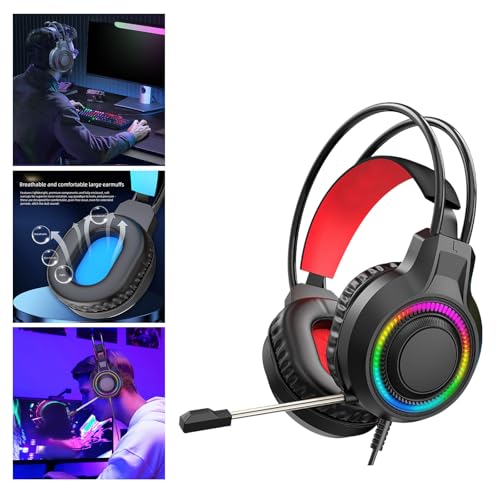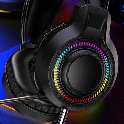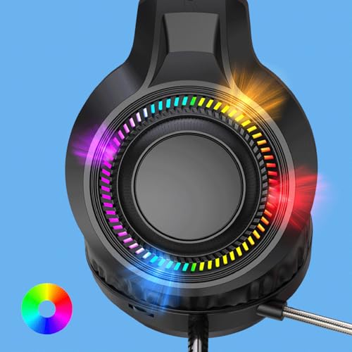 Over Ear Computer Headsets with Dynamic RGBs Lighting Noise Canceling Mics 40mm Composite Driver Full Enclosed Acoustics Comfort Headband for Gaming Lightweight Adjustable Gaming Headphones