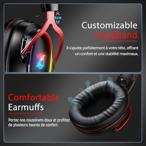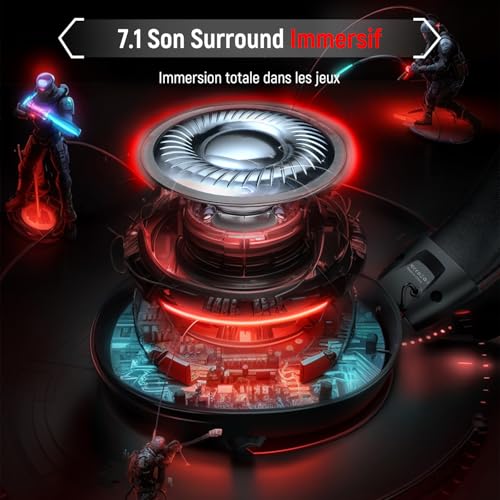 🕹️【Signature sonore riche- Idéale pour les jeux】 Offrez une expérience audio de jeu holistique avec des basses puissantes grâce aux haut-parleurs de 50 mm et au son surround 7.1. Que ce soit un jeu de tir à la première personne, un jeu de course ou un jeu de rôle, plongez dans l’action comme si vous y étiez.