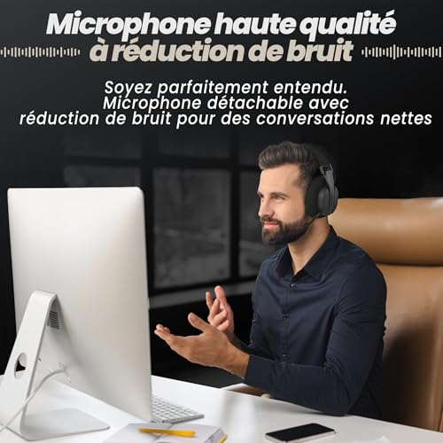 [Microphone Haute Qualité] Le micro détachable à réduction de bruit garantit une voix claire et nette, même en environnement bruyant. Idéal pour le gaming, les appels ou les visioconférences, il offre une communication fluide et précise