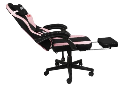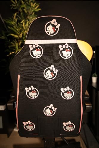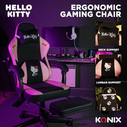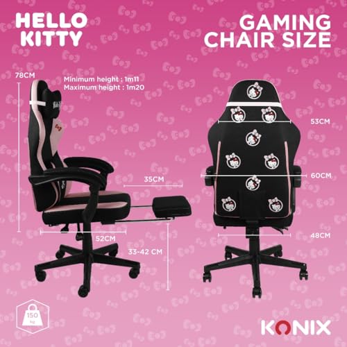 Konix Hello Kitty Chaise de Bureau Gaming – Inclinaison siège 150° – Revêtement Tissu – Armature Bois et métal – Coussin – Repose-Pieds – Noir et Rose
