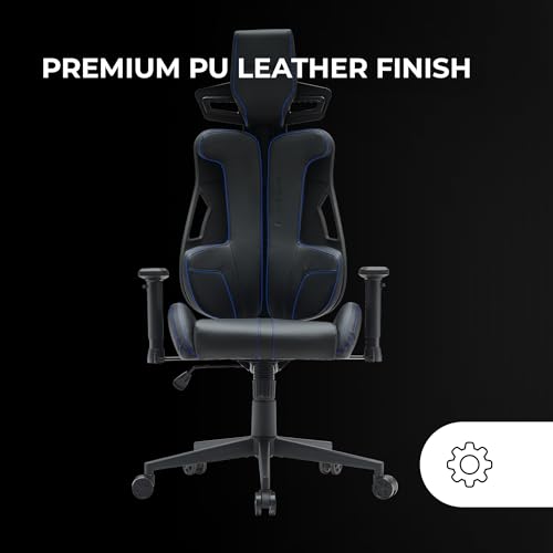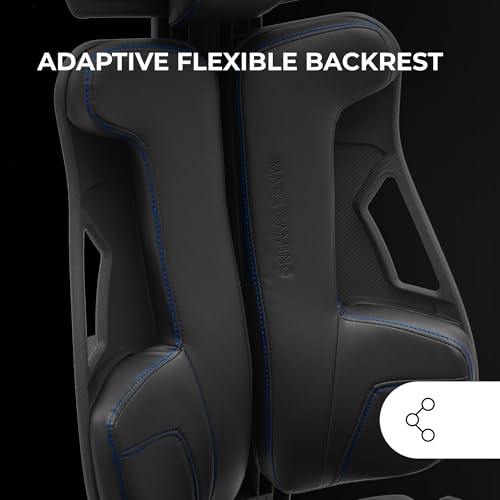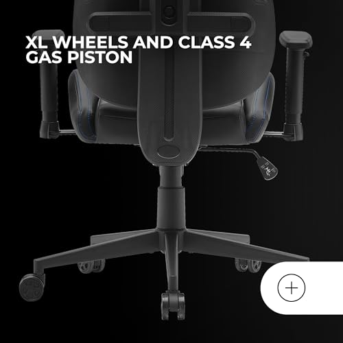 Mars Gaming MGC-Elite, Chaise Gaming Ergonomique, Dossier Flexible Adaptatif, Accoudoirs Ajustables 2D, Siège Inclinable, Finition Cuir PU, Chaise de Bureau avec Roues XL, Vérin à Gaz Classe 4, Bleu