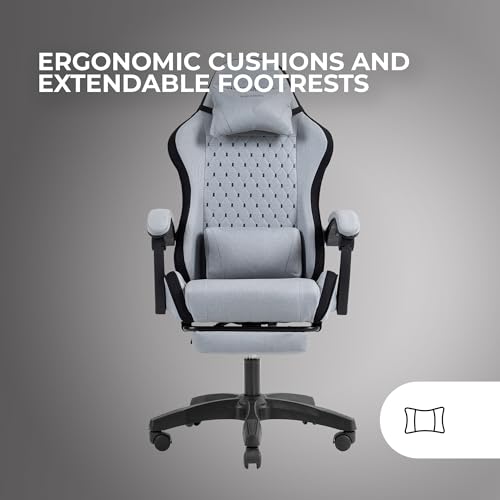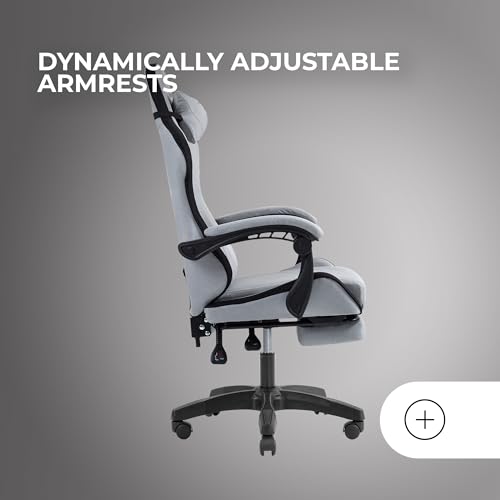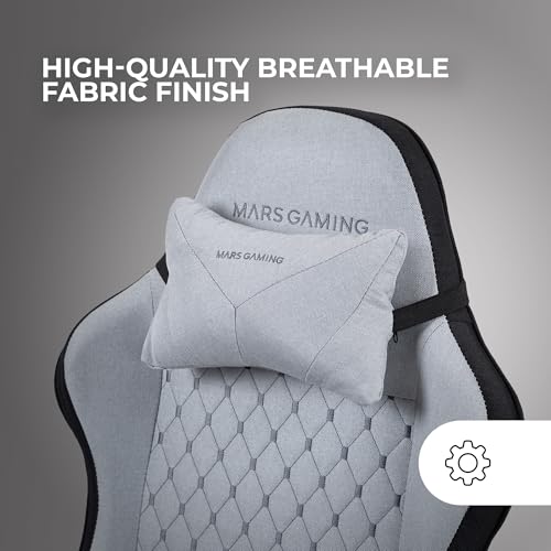 Mars Gaming MGC-X, Chaise Gaming Ergonomique, Tissu Respirant, Dossier Inclinable et Hauteur Réglable, Accoudoirs Dynamiques, Coussin Cervical et Lombaire, Chaise avec Repose-Pieds Extensible, Noir