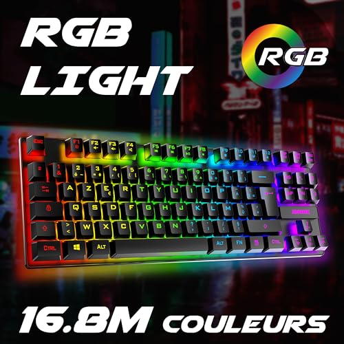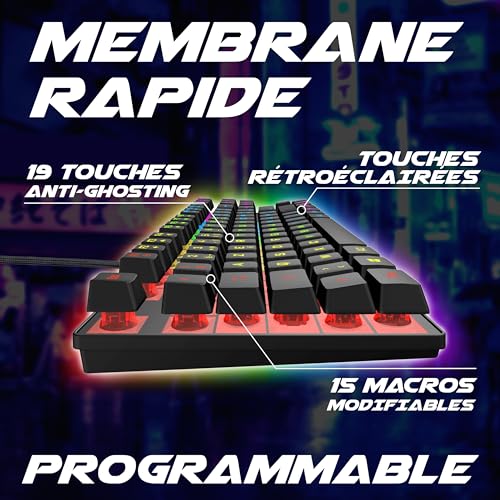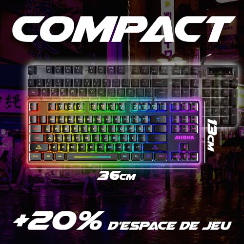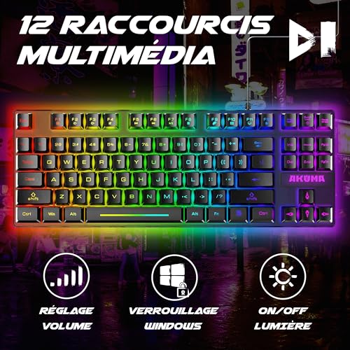 AKUMA – Clavier Gaming à Membrane SHÔNEN T02 TKL 88 Touches Rétroéclairées LED RGB Programmable – Filaire USB – AZERTY Français – Compact sans Pavé Numérique