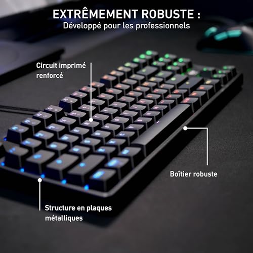 Clavier de jeu filaire hautes performances : doté d’une construction en plaques métalliques et d’un boîtier robuste, il offre des performances élevées sans fioritures inutiles