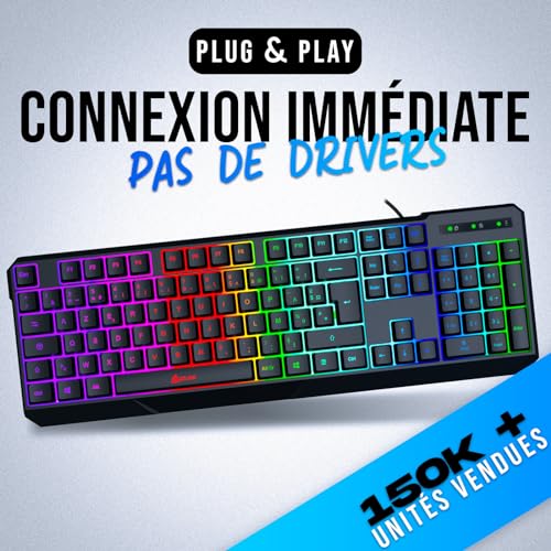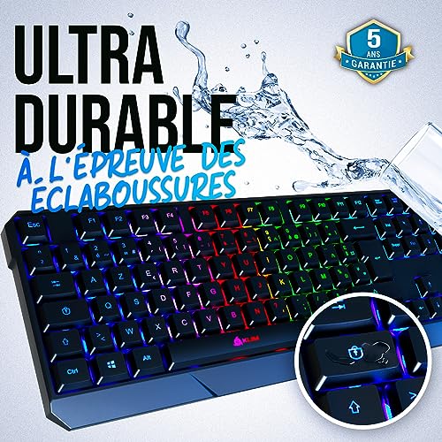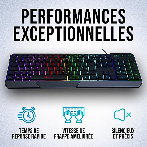 KLIM Chroma Clavier Gamer AZERTY FR – Nouveauté – Silencieux USB – Clavier Filaire Rétroéclairé LED – PC Gaming PS4 PS5 Mac – Noir