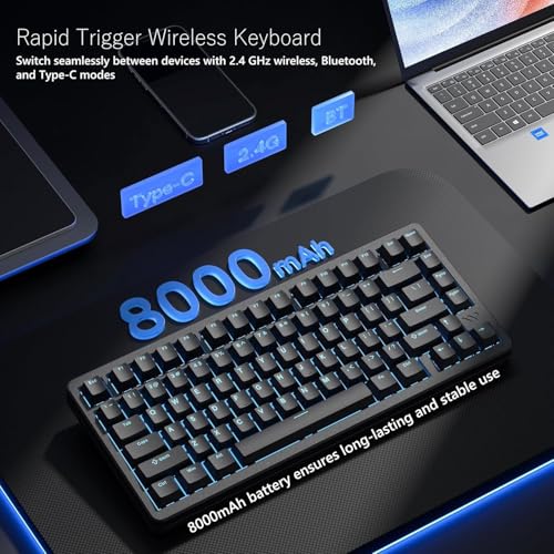 LQXQ SK75 TMR Clavier mécanique sans fil 75 % aluminium ANSI US, pré-lubed POM Switches RGB Creamy Gaming Keyboard, 3 modes BT5.0/2.4G/USB-C, clavier remplaçable à chaud avec joint, noir