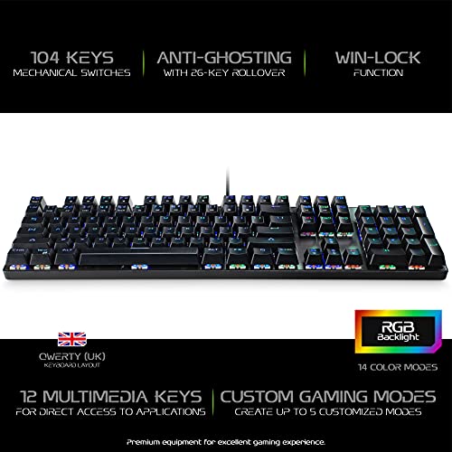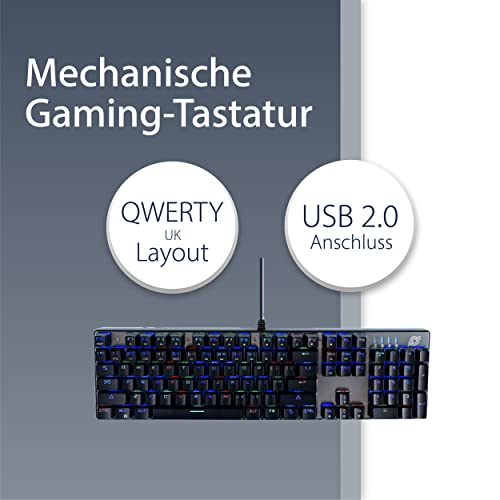 MediaRange Gaming Series Corded Mechanical Gaming-Keyboard with 104 Keys and 14 Color Modes, QWERTY (UK), Black/Silver