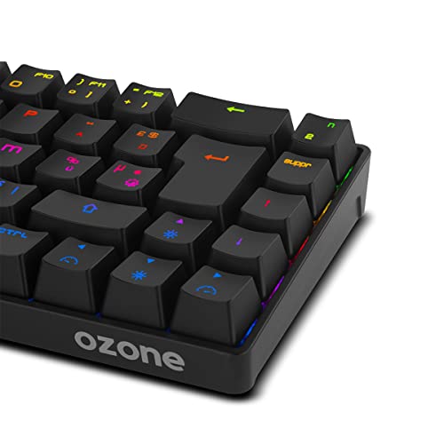 Ozone Gaming Mini Tactical Keyboard -OZTACTICALFR- Clavier mécanique sans pavé numérique, Bluetooth, commutateurs Outemu Red, éclairage LED RGB, Silencieux, Layout FR, Noir