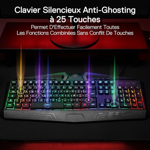 Clavier avec 6 Modes et Effets d’Éclairage RGB – Découvrez un clavier de jeu qui s’adapte à votre style unique ! Avec 6 modes d’éclairage RGB personnalisables, vous pouvez créer l’ambiance parfaite pour chaque session de jeu. Que vous préfériez des effets dynamiques ou un éclairage statique, ce clavier vous permet d’ajuster facilement les couleurs et les motifs selon vos préférences, rendant chaque expérience de jeu encore plus immersive et captivante
