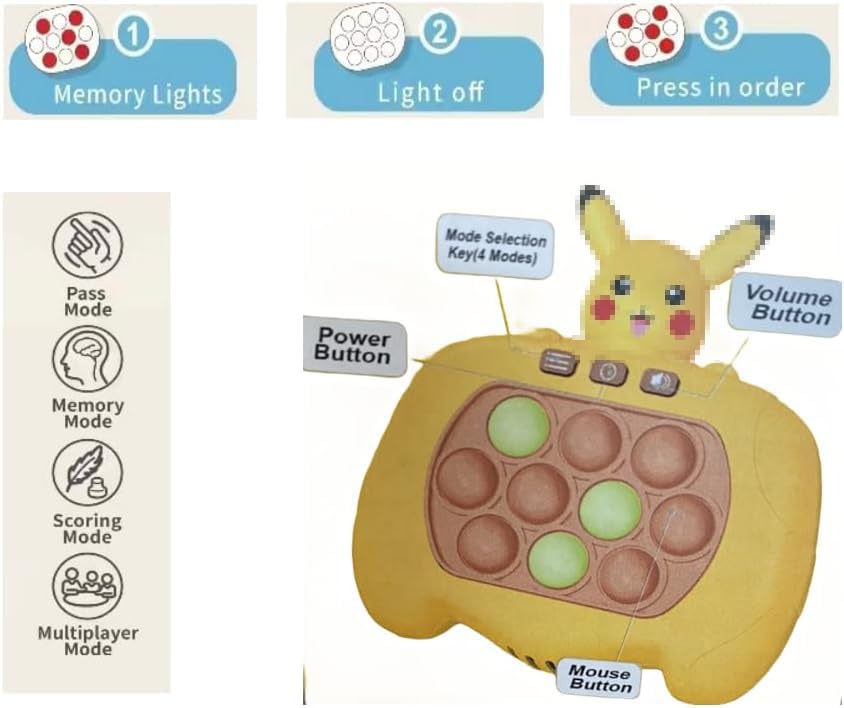 JEUX AMUSANTS : ce jeu rapide à pousser est parfait pour soulager le stress des enfants et améliorer la stimulation sensorielle. La console de jeu facile à utiliser comporte des boutons réactifs ; sélectionnez un mode, puis appuyez sur le bouton de confirmation au dos pour jouer