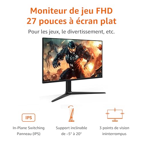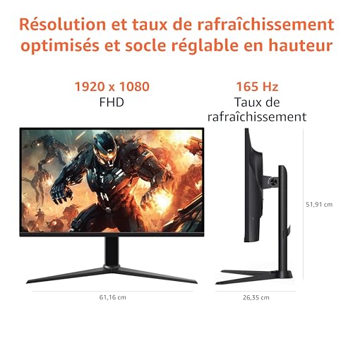 Amazon Basics Écran de gaming 27″, FHD 1080p, 165 Hz, compatible VESA, Adaptive Sync, temps de réponse de 1 ms, Noir