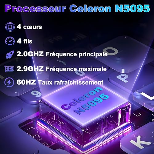 【PROCESSEUR DE DERNIÈRE GÉNÉRATION】Ordinateur portable N600 équipé de Win 11 et du dernier processeur puissant Celeron N5095 Quad-Core avec une fréquence turbo de 2,0 GHz (prend en charge jusqu’à 2,9 GHz). Exécutez plusieurs applications, onglets de navigateur et vidéos sans problème, ce qui garantit un multitâche plus rapide et vous permet de profiter pleinement de vos jeux, divertissements, travaux et études.