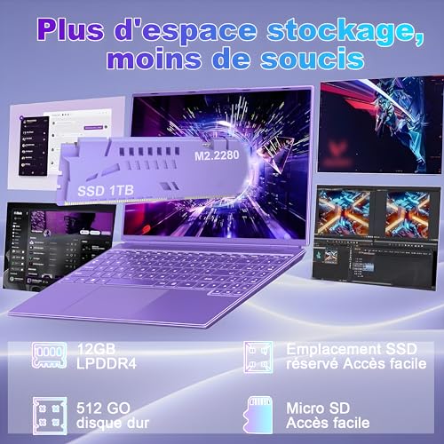 【STOCKAGE ET MÉMOIRE】 Le portable 16 pouces dispose de 12 Go de RAM intégrée et de 512 Go d’espace de stockage SSD, il prend en charge jusqu’à une carte TF de 512 Go, un SSD de 1 To et une extension HDD de 2,5 pouces. La mémoire suffisante gère efficacement et rapidement les flux de travail multi-applications et multimédia, offrant beaucoup d’espace et des vitesses de lecture et d’écriture plus rapides pour vos documents, photos et vidéos.