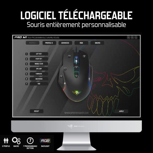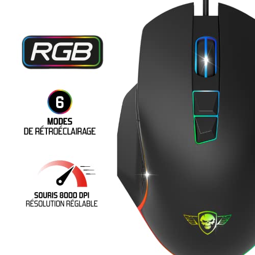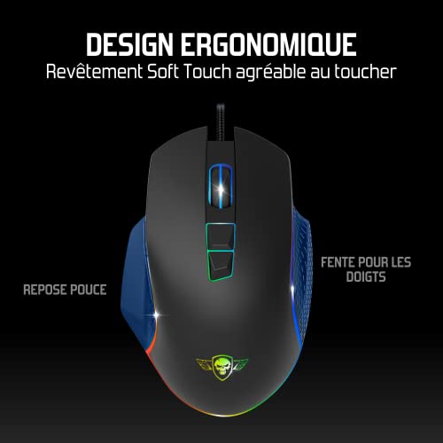 Spirit Of Gamer Pro M1, Souris Gamer Filaire 7 Boutons Programmables, Capteur Optique 8000 DPI, Rétroéclairage RGB Personnalisable, Gaming Mouse Ergonomique avec Repose Pouce, Compatible PC Gamer