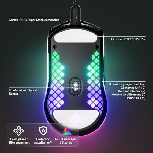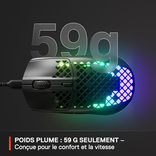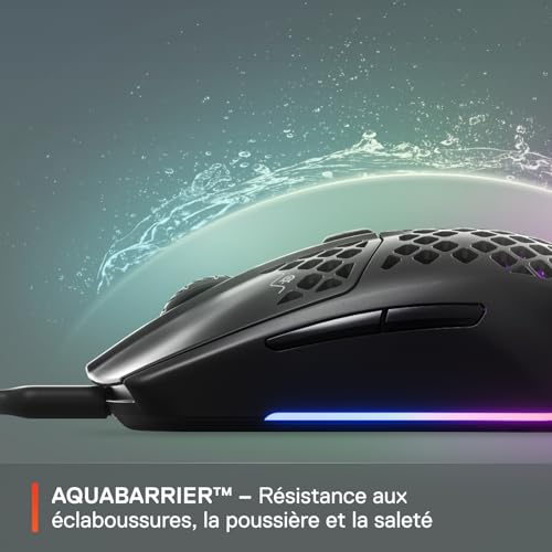 SteelSeries Aerox 3 – Souris gaming RGB perforée – Conception étanche ultralégère – Capteur optique TrueMove Core 8 500 DPI – Onyx