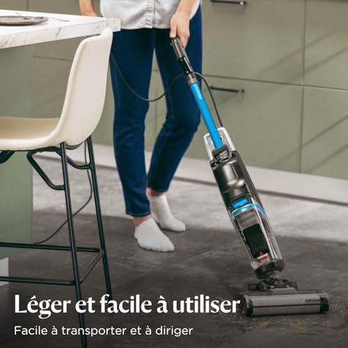 Bissell CrossWave HF2, Aspirateur Balai Laveur à Câble, Aspire & Lave en Même Temps, Nettoyeur Eau et Poussière Léger & Puissant, Aspirateur Balai Sec et Humide, Seulement pour Sols Durs, 3845N