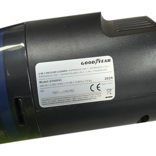 Goodyear – Aspirateur Balai électrique 600W sans Sac, Puissant 18 kPa, léger 1,9 kg, Silencieux 79 DB, réservoir 0,6L, câble 3,8 m, contrôle de débit, Usage Domestique