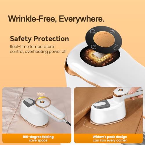 【1100 W Défroisseur vapeur puissant et préchauffage rapide en 15 secondes】Ce mini défroisseur haute pression offre une puissance allant jusqu’à 1100 W, un temps de préchauffage de moins de 15 secondes et une température constante de 320°F pour un repassage rapide et efficace. La vapeur puissante pénètre profondément dans le tissu, adoucit les fibres et élimine efficacement et rapidement les plis.