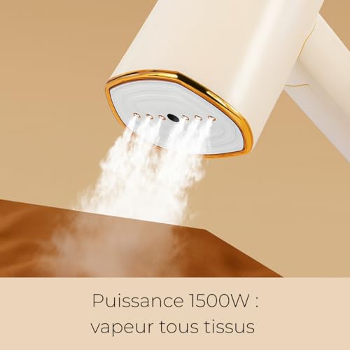 Défroisseur Vapeur 1500W chauffe en 15s, Steamer anti-pli puissant, Fer à repasser portable, pliable pour voyage, Réservoir 168ml, Défroisseur vertical & horizontal.