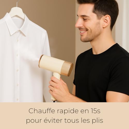 【Défroisseur vapeur à chauffe rapide & défroissage puissant (1500W)】 Prêt en 15 secondes, ce défroisseur de 1500 W élimine plis et froissures en quelques passages seulement. Idéal pour gagner du temps le matin ou préparer une tenue impeccable