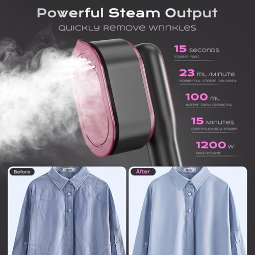 Défroisseur Vapeur Professionnel Steamer 2 en 1 pour Vêtements et Fer à Repasser, 1200W Fer a Repasser Voyage Défroisseur à Main, Chauffage en 15s, Réservoir 100ml, 5 Modes pour Voyage, Maison