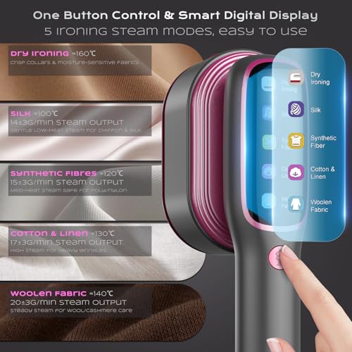 🌟【4 Niveaux De Vapeur】Écran Numérique Intelligent Avec 5 Modes Spécialisés! Fer Sec: Pour les cols parfaits et les tissus sensibles à l’humidité; Soie: Vapeur douce à basse température pour la mousseline et la soie délicates; Synthétique: Vapeur à température moyenne évitant la fonte des tissus en polyester/nylon; Coton/Lin: Vapeur puissante pour éliminer les plis tenaces des tissus épais; Laine: Vapeur à température constante préserve la texture parfaite de la laine et du cachemire.