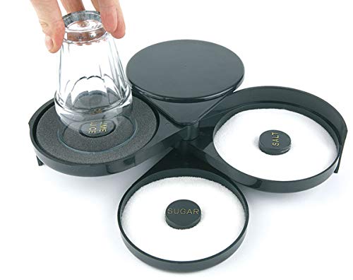 Bordure en verre pour magaritas, bord salé, 2 compartiments pour sucre et sel, éponge pour jus de citron vert, différents diamètres possibles, pour cocktails, noir