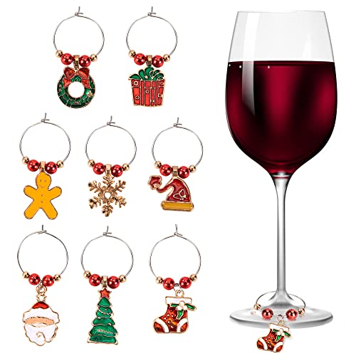 8 Pièces Charmes de Verre à Vin de Noël