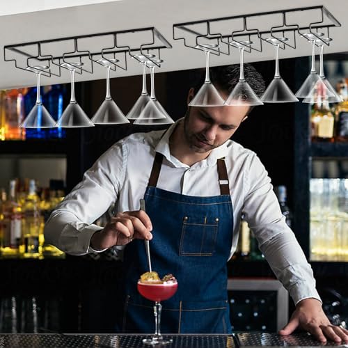 Dokeno 2 Pièces Porte-Verres à Pied Suspendu en Métal – 4 Rangs avec Vis, Support pour 8 à 12 Verres à Vin Sous Armoire – pour Cuisine Bar Restaurant