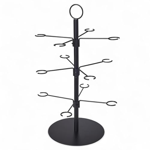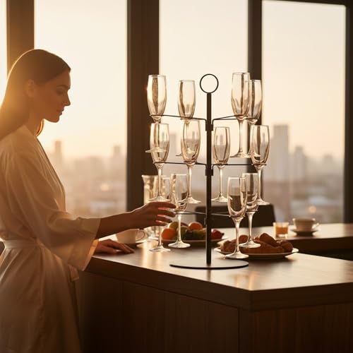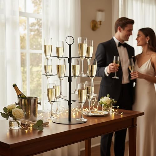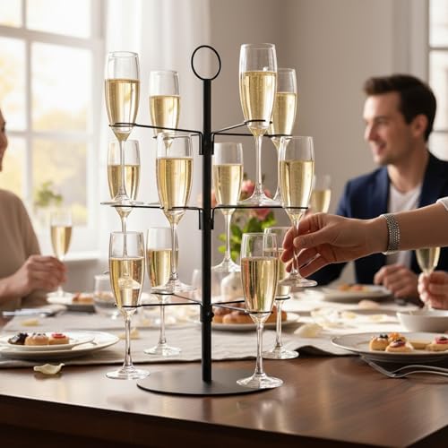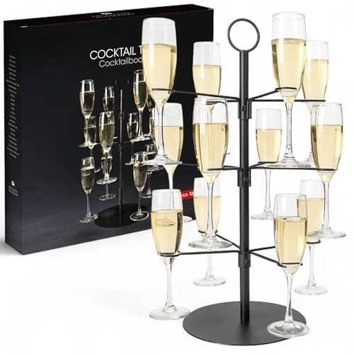 MIJOMA Arbre à cocktail noir – Support en métal à 3 niveaux – Support pour 12 verres – Arbre à champagne – Porte-boissons de fête – Accessoires de bar – Hauteur 55,5 cm – Support alimentaire