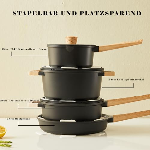 Florosa Ultimate 7 pièces Équipement de cuisine de base: l’ensemble comprend 1 * 24 cm casserole avec couvercle (capacité 5L); Pot à mijoter de 18cm avec couvercle (capacité 2L); 1 casserole de 28 cm; 1 * 28CM poêle profonde avec couvercle (volume 3.2l);