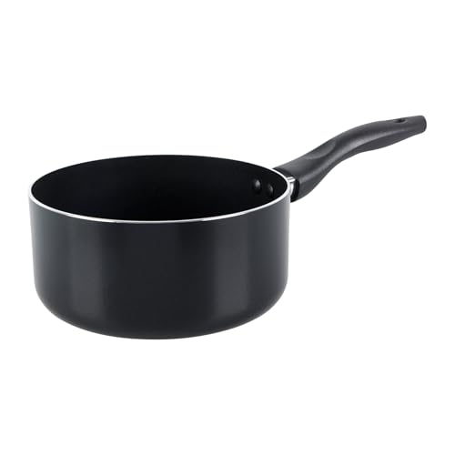 Lot de 2 poêles 24/28 cm et 1 casserole de 18 cm – Batterie de cuisine en aluminium noir antiadhésive, sans PFOA – Manche en bakélite noire
