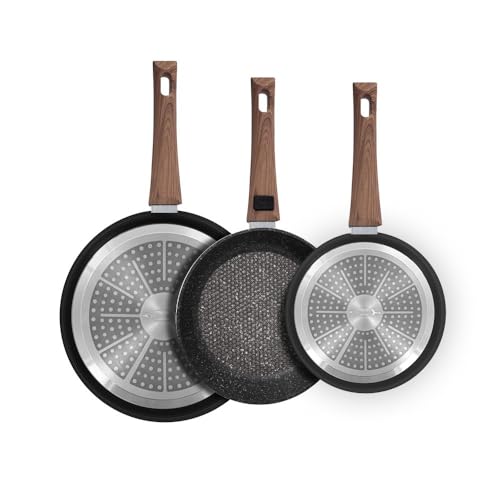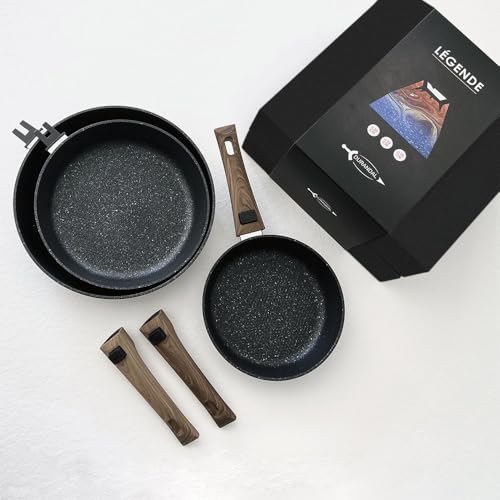 Durandal – Coffret 3 poêles antiadhésives Légende à manches amovibles 20,24,28cm -Batterie de cuisine compatible four, induction