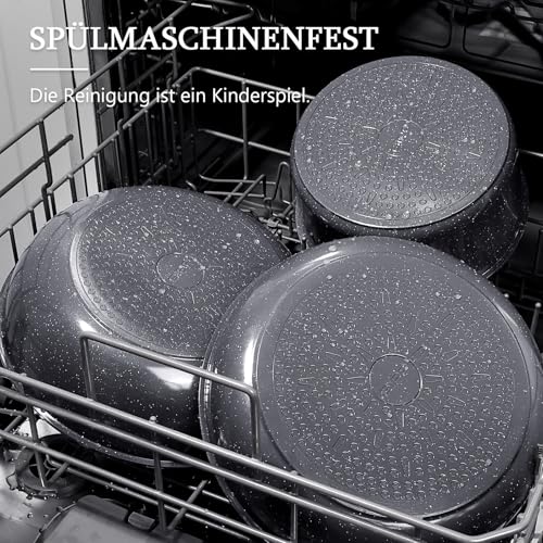 Revêtement céramique sain – Fabriqué avec un revêtement céramique antiadhésif 100 % non toxique, sans PFOA, PFAS, PTFE, plomb ni cadmium. Profitez d’une cuisine plus saine grâce à l’ensemble de casseroles et poêles en céramique !