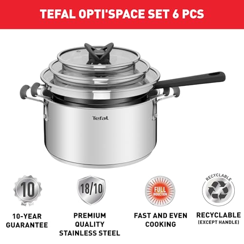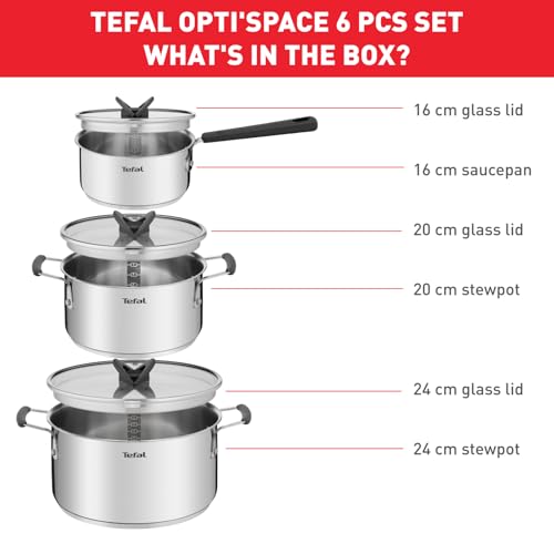 Tefal G7376S Opti’Space Set de Casseroles 16/20/24 cm | Acier Inoxydable | Fond Thermofusion | Pour Tous Feux | Induction | Gris