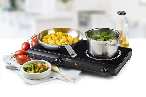 PLAQUE DE CUISSON ÉLECTRIQUE DOMO 2 FEUX – Préparez vos plats facilement avec cette plaque de cuisson DOMO à deux zones de cuisson de 18 cm chacune